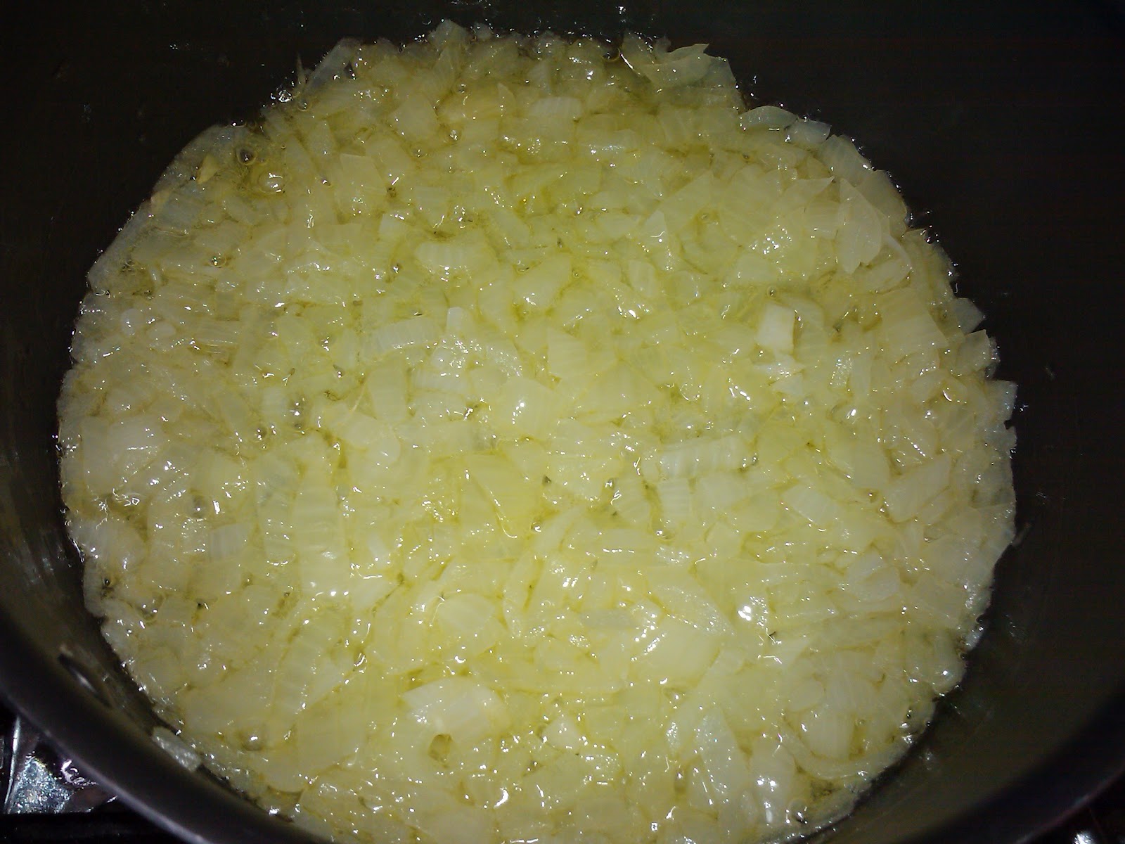 Refogue a cebola na manteiga e um fio de azeite. Quando ela começar a dourar retire do fogo e deixe resfriar (em caso de pressa dá pra colocar numa tigelinha na geladeira).